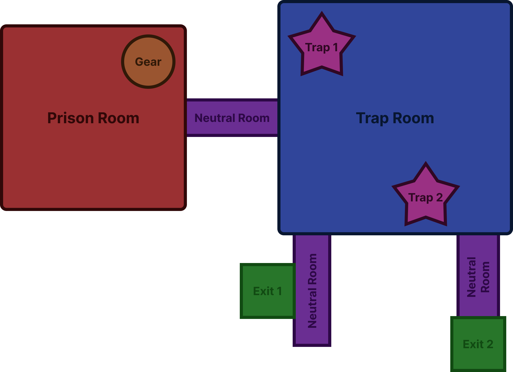 - At least 1 trap room that connects to the prison room, this leads to the exit!